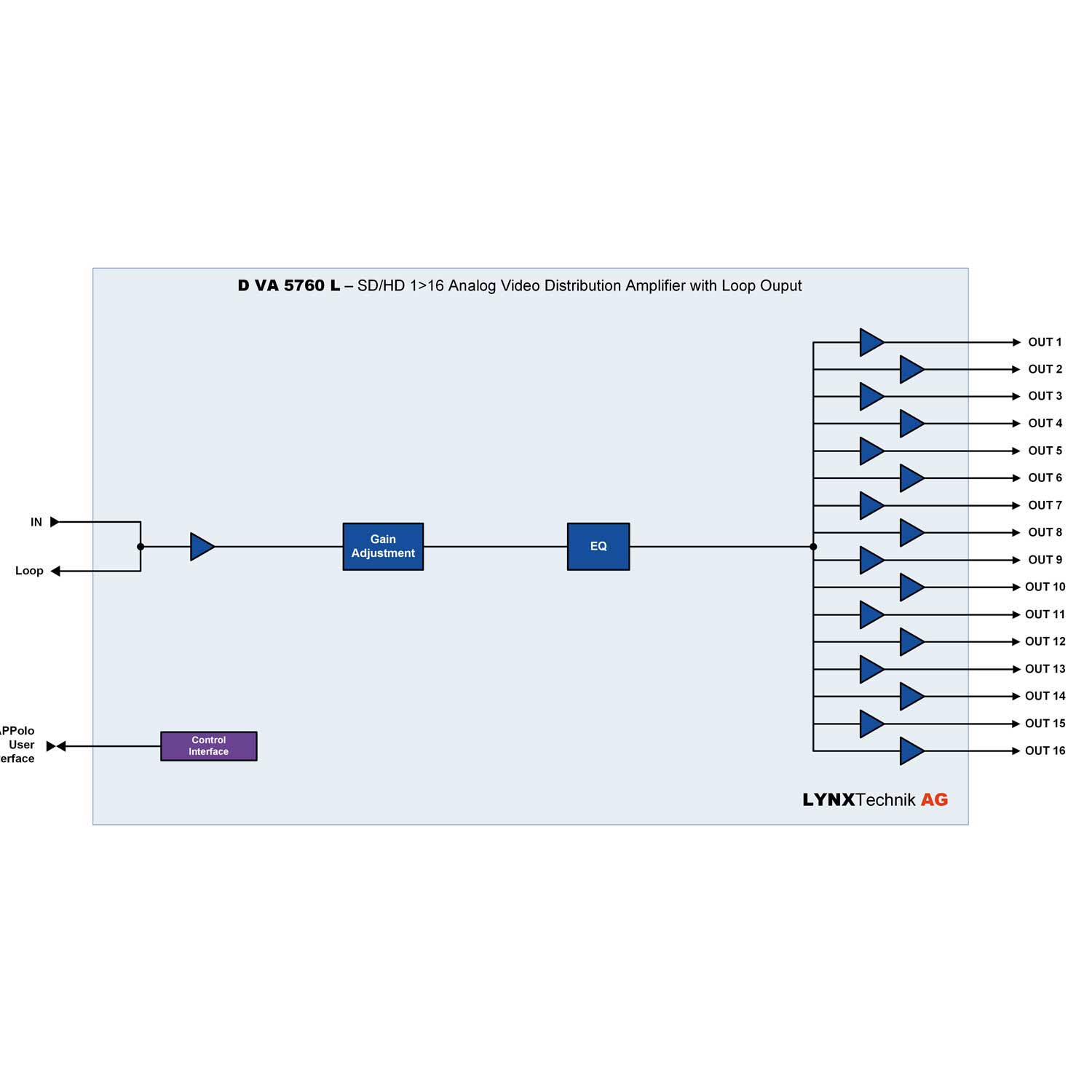 | 4250479321625 | DVA 5760 L | 1>16 Analog Video/Sync Distribution Amplifier |