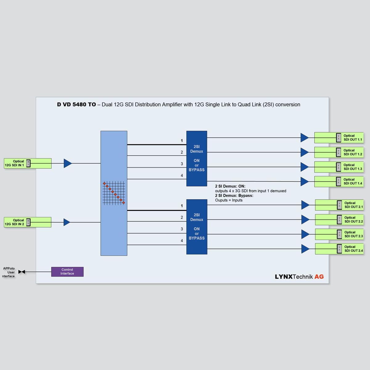 - Supports 12Gbit/s on Optical inputs and outputs