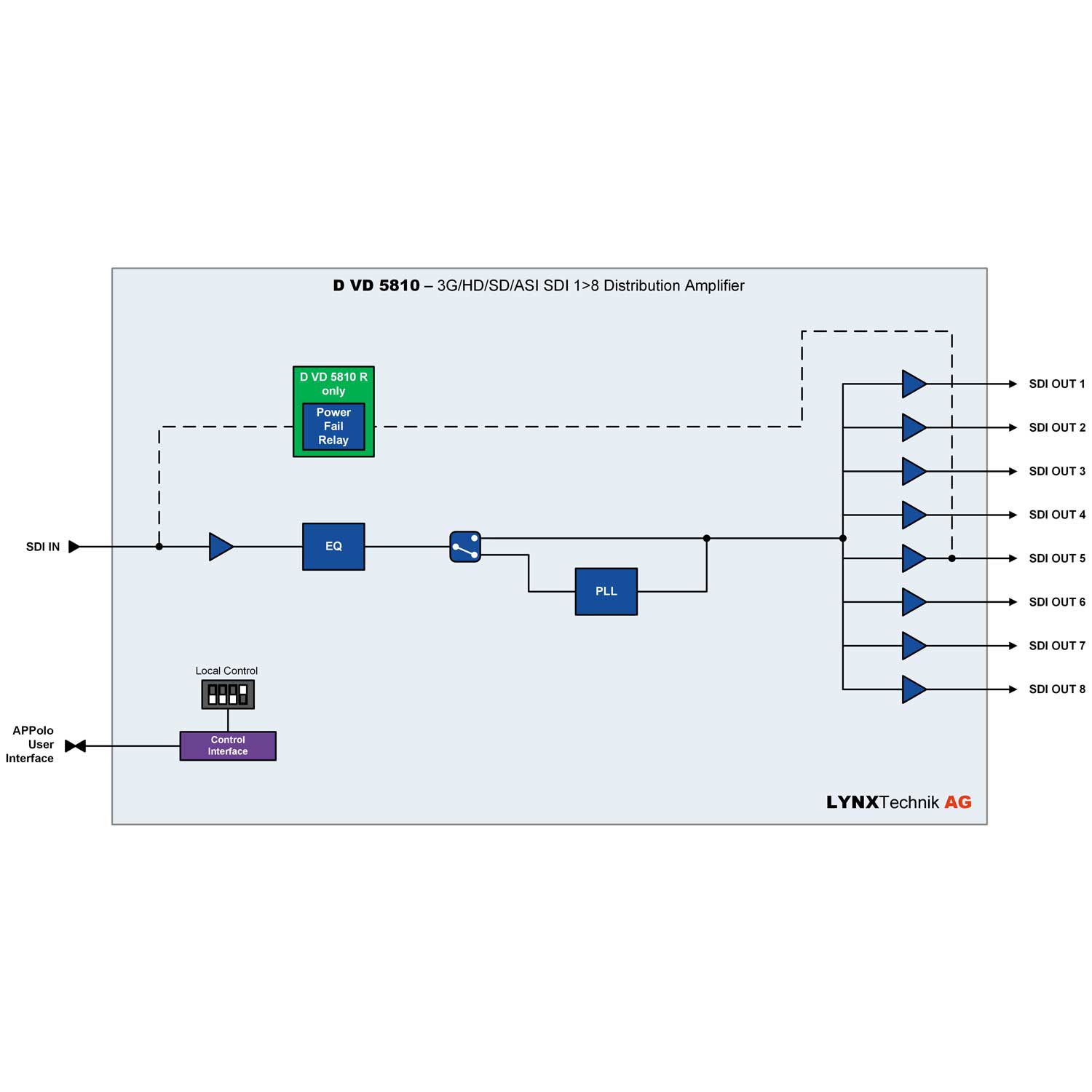 - Version available with power fail relay connecting input to output (DVD 5810 R)