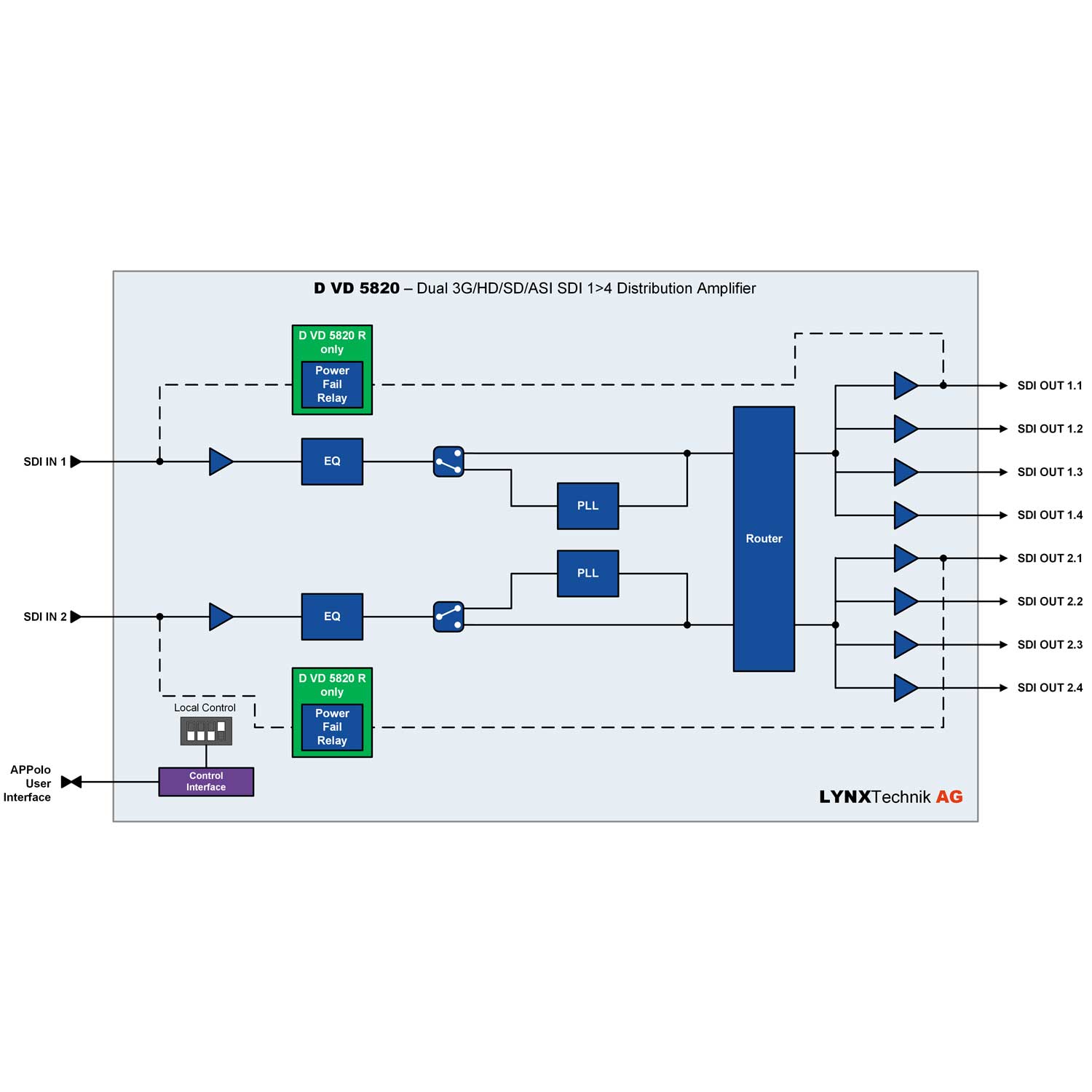 | 4250479321670 | DVD 5820 R | Dual 1>4 or 1>8 3G-SDI Distribution Amplifier with Bypass Relays |