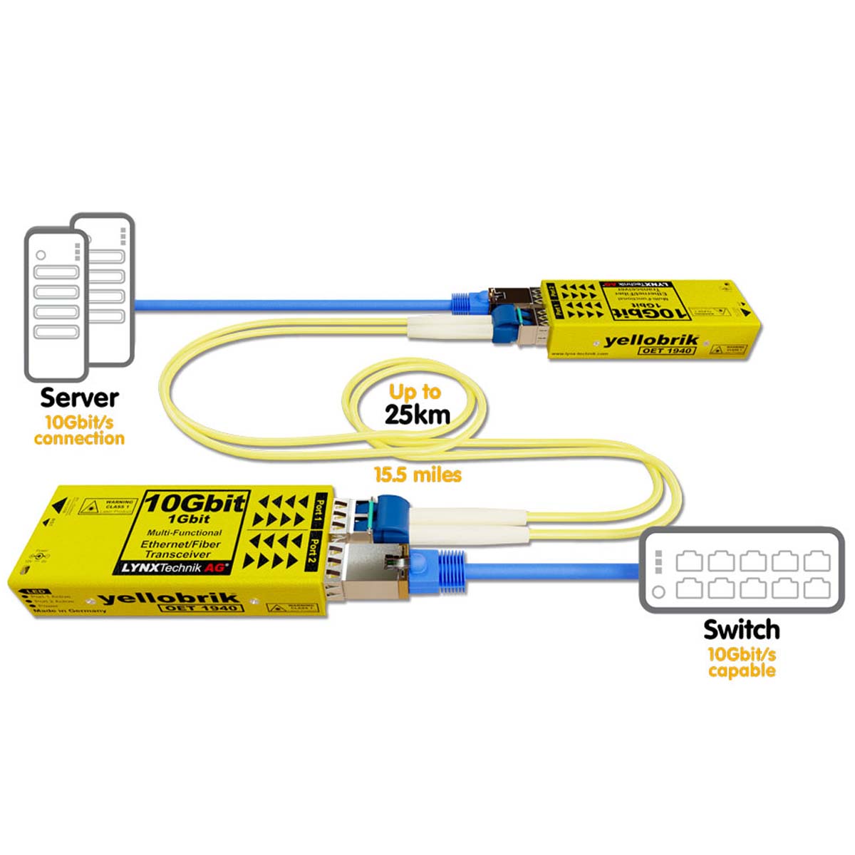 - Supports distances up to 25km (15.5 miles) over Single-mode fiber
