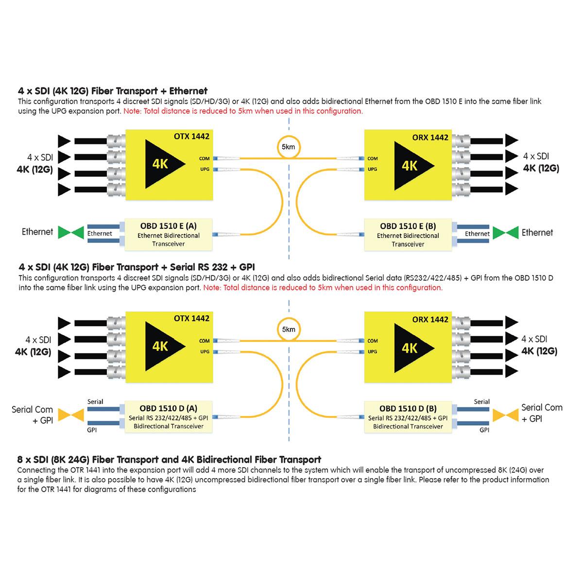 An expansion port is included for the connection of the OTR 1441 to add 4 more SDI channels (for 8 channels over a single fiber)