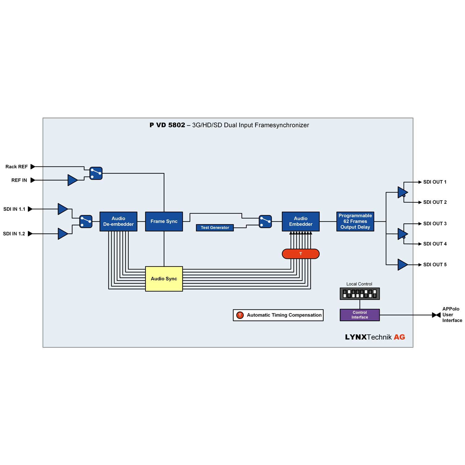 The P VD 5802 is a low cost utility SDI frame synchronizer which can be used for basic SDI synchronization issues in broadcast. The module offers multi-format support for SDI formats up to 3Gbit/s (auto-detect)