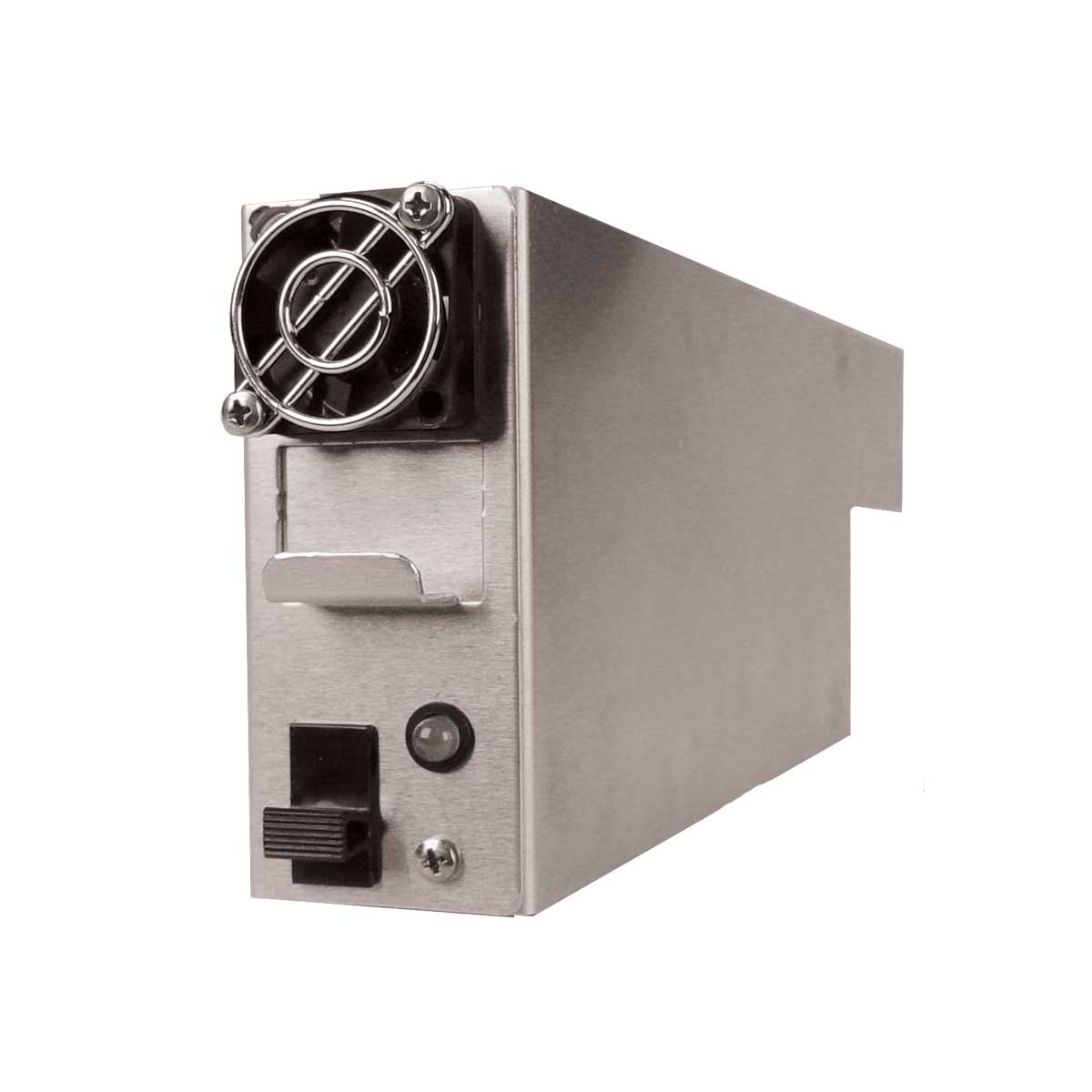 The RPS 5018 is a modular power supply designed for demanding applications and is used as the primary and redundant power supply in the RFR 5018 US 2RU rack frame. The module features integral microprocessor control and sophisticated power filtering. The unit also has a temperature controlled DC fan and on-board LED alarm and status indication.